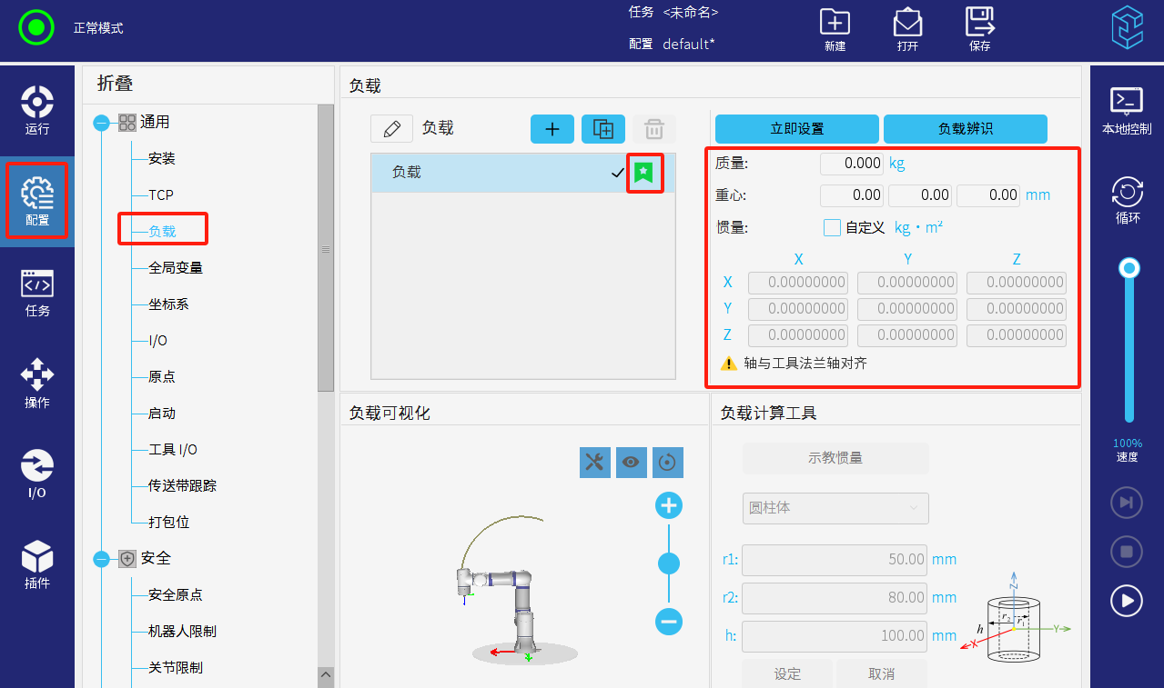 空載標定完成后、需要觀察一下傳感器適配器插件負載補償界面中的Fx、Fy、Fz的值是否接近0;如果對補償參數不滿意可以重新標定。