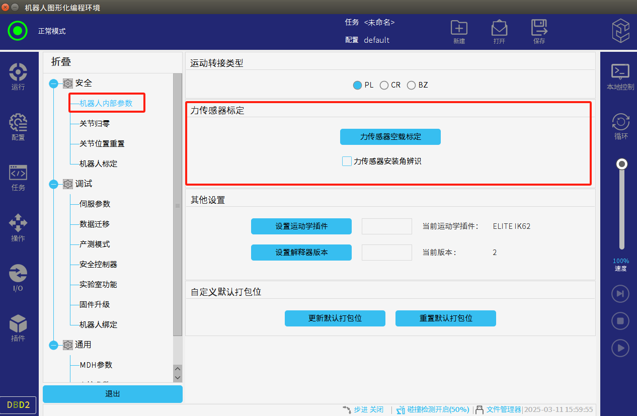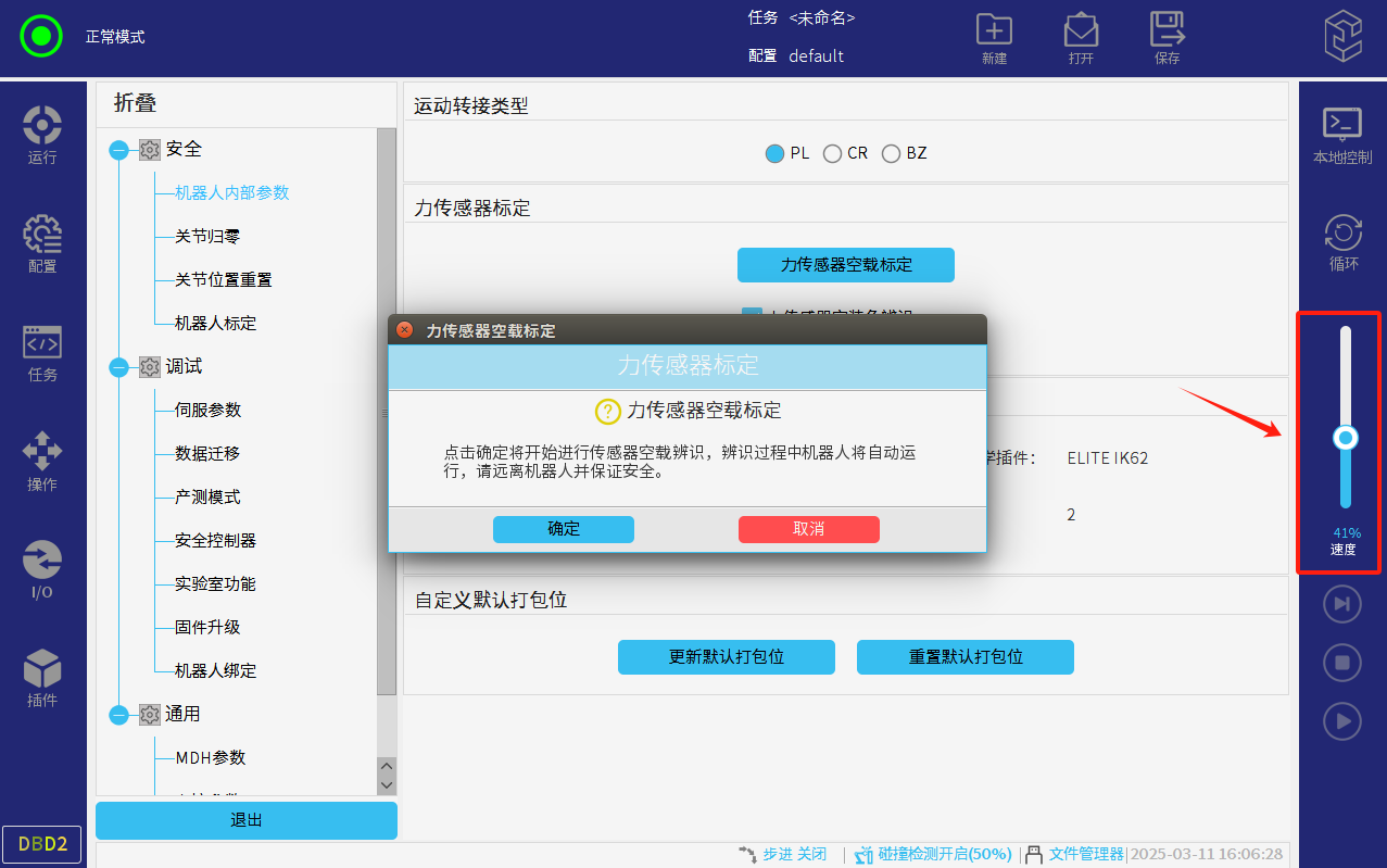 注意:力傳感器標定需要一定空間,不能在末端安裝除力矩傳感器外任何裝置;機器人在力傳感器標定的時候會運動。