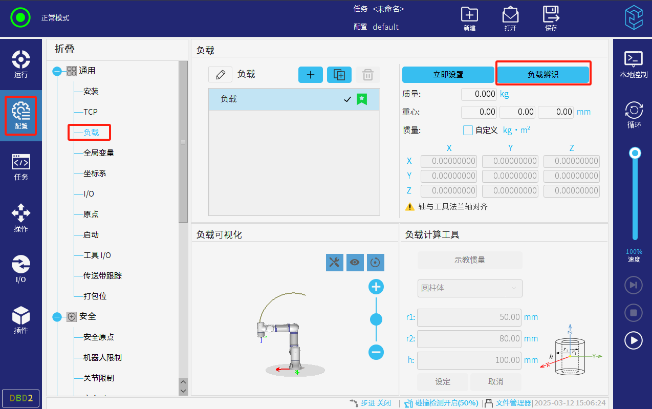 在負載辨識完成的基礎上,再次進入負載辨識界面。在負載辨識結果的界面,點擊下方的力傳感器安裝角辨識。