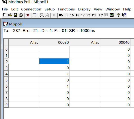 第一種方法:直接雙擊poll表格里的地址,修改value值來寫入(對應功能碼06 寫單個輸出寄存器)