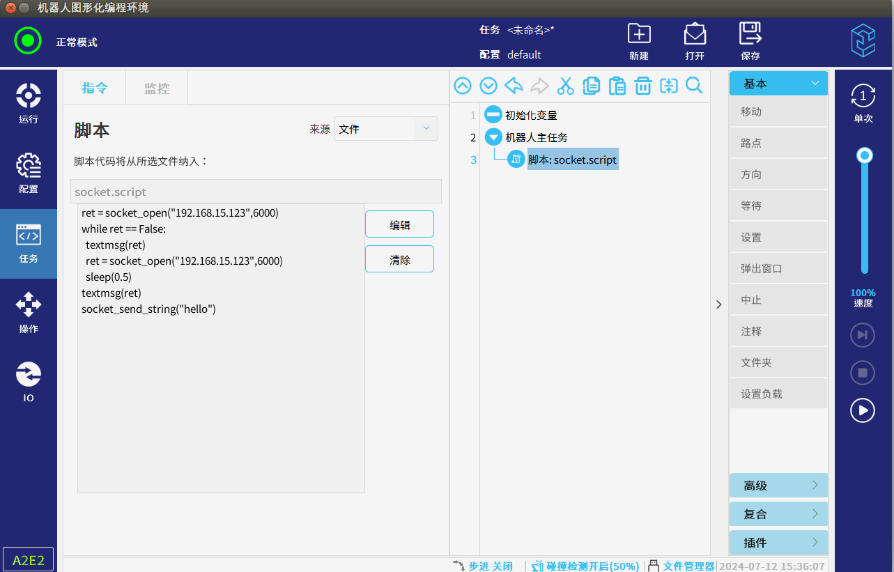 1. 參考 CS腳本手冊 ,寫一個簡易的通訊腳本,IP 輸入目錄 2.1 里獲取的 IP:192.168.15.123 。