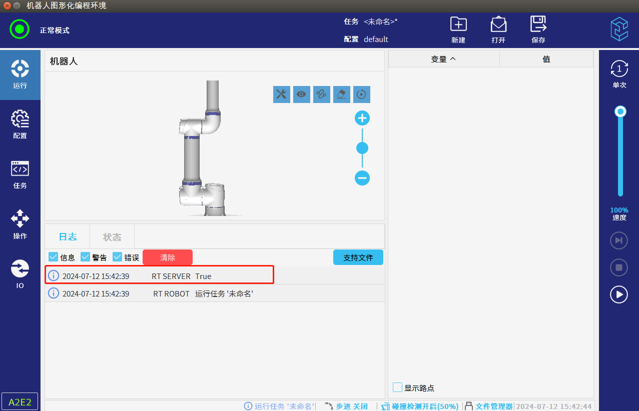 4. 機器人運行程序,連接成功,機器人會在運行窗口,打印 True 。