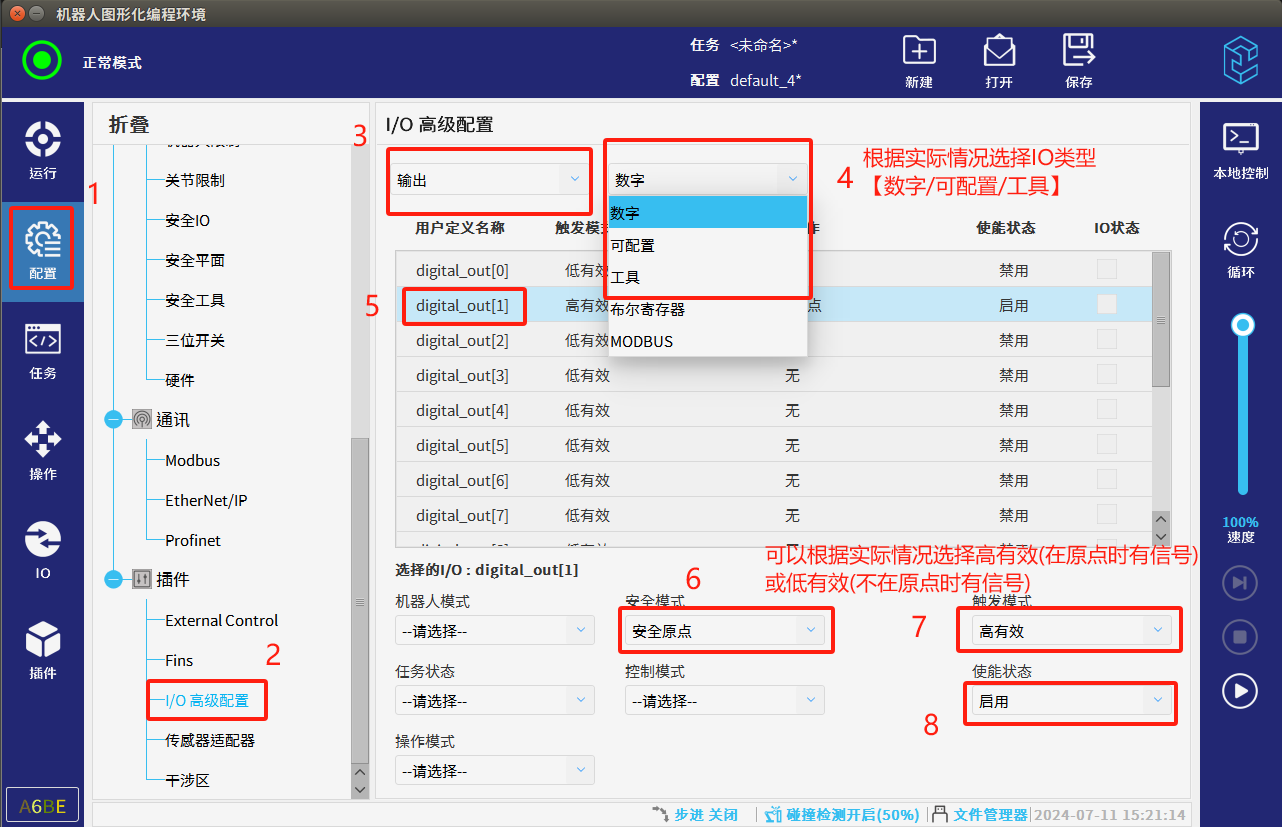 5. 使用IO/高級配置插件配置安全原點信號輸出時應用版本要求2.11及以上,IO/高級配置插件版本IOExtensionConfig-1.2.11.1及以上。