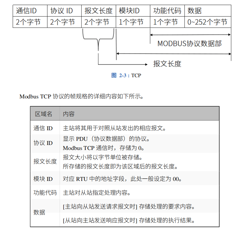 2-2-1. 作為從站并通過以太網(wǎng)連接各種 Modbus TCP 主站設(shè)備進(jìn)行通信,協(xié)議的幀