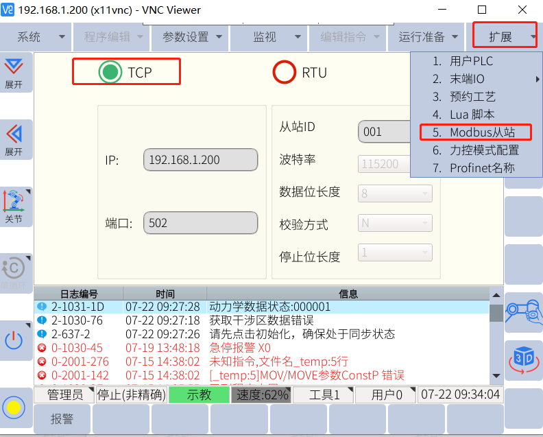 2-1-4. 啟用示教器中modbusTCP設(shè)置