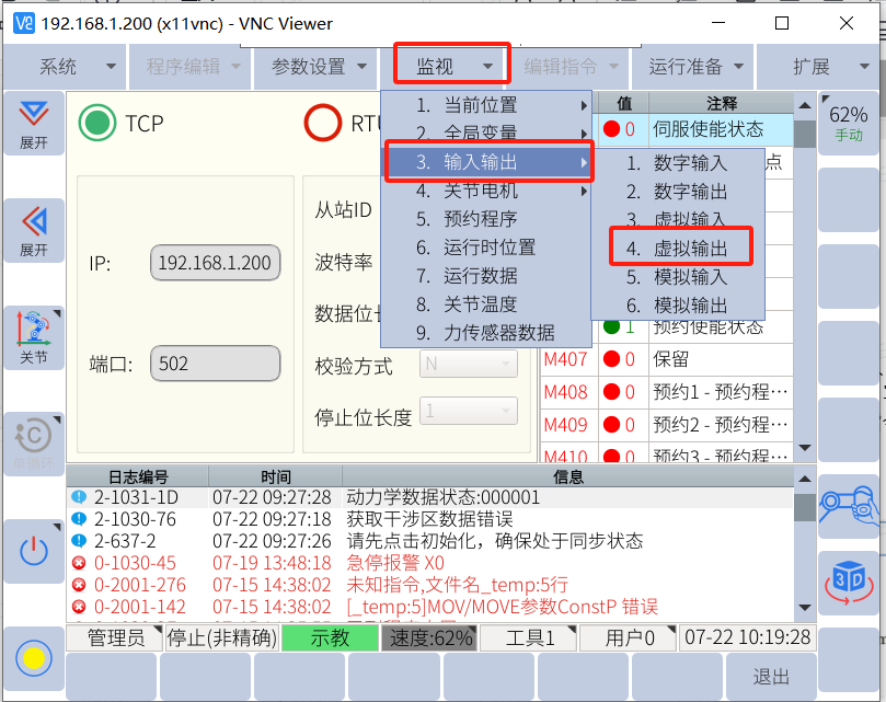 機(jī)器人端將虛擬輸出M530、M531、M533、M534置為1
