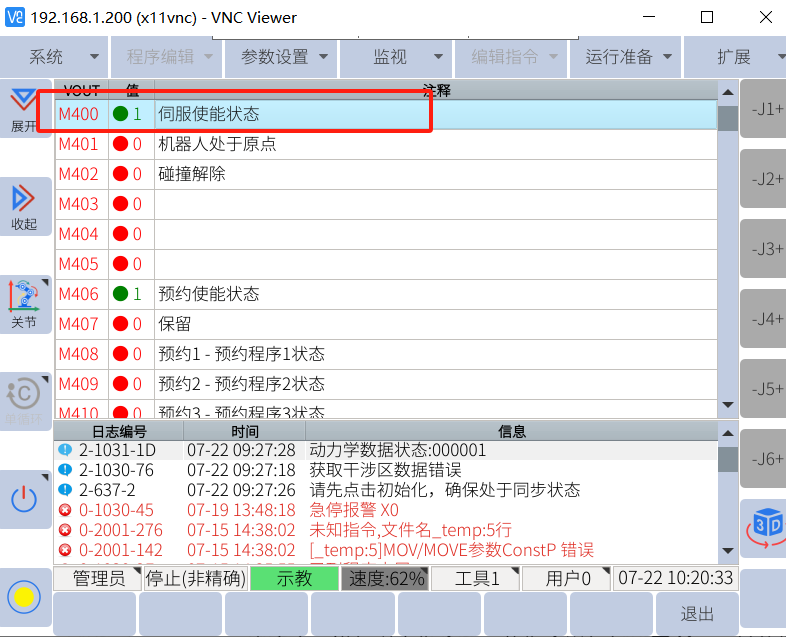 示教器中查看對應(yīng)的M920、M922、M924分別狀態(tài)為1,讀取線圈功能及指令正常