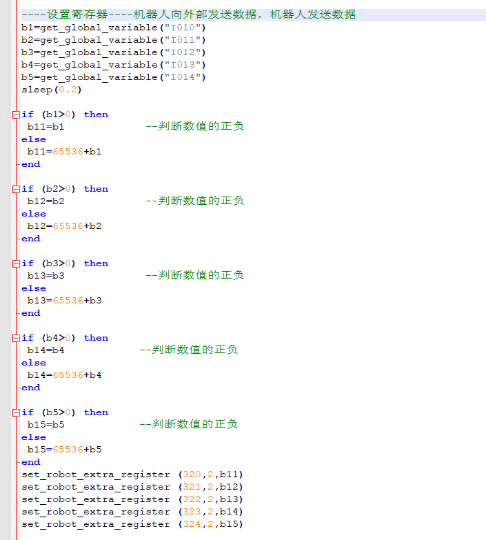 6).機(jī)器人通過全局變量I10-I14,將數(shù)據(jù)寫入寄存器320-324,腳本如下所示