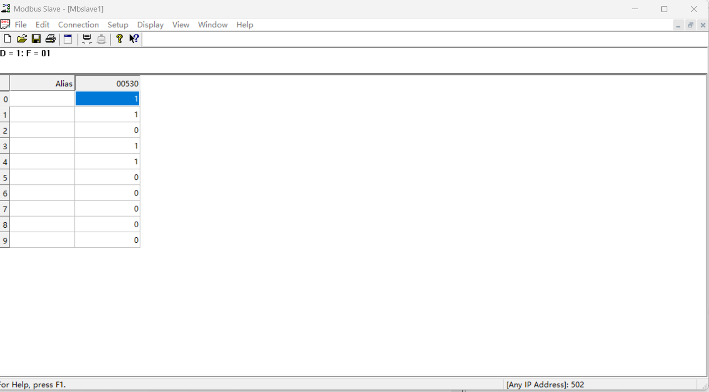 助手中可以查看到線圈530、531、533、534狀態(tài)都為1,寫入線圈功能及指令正常