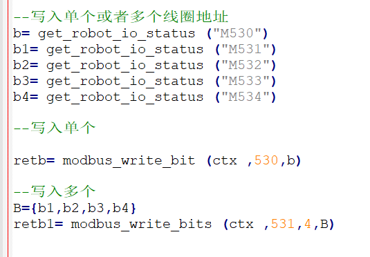 寫入單個(gè)和多個(gè)線圈指令,定義將M530數(shù)值寫入到線圈530,M531-M534數(shù)值分別寫入線圈531-534中