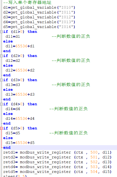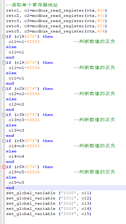 讀取400開始的5個(gè)寄存器,分別將寄存器數(shù)值存入全局變量I000-I004中