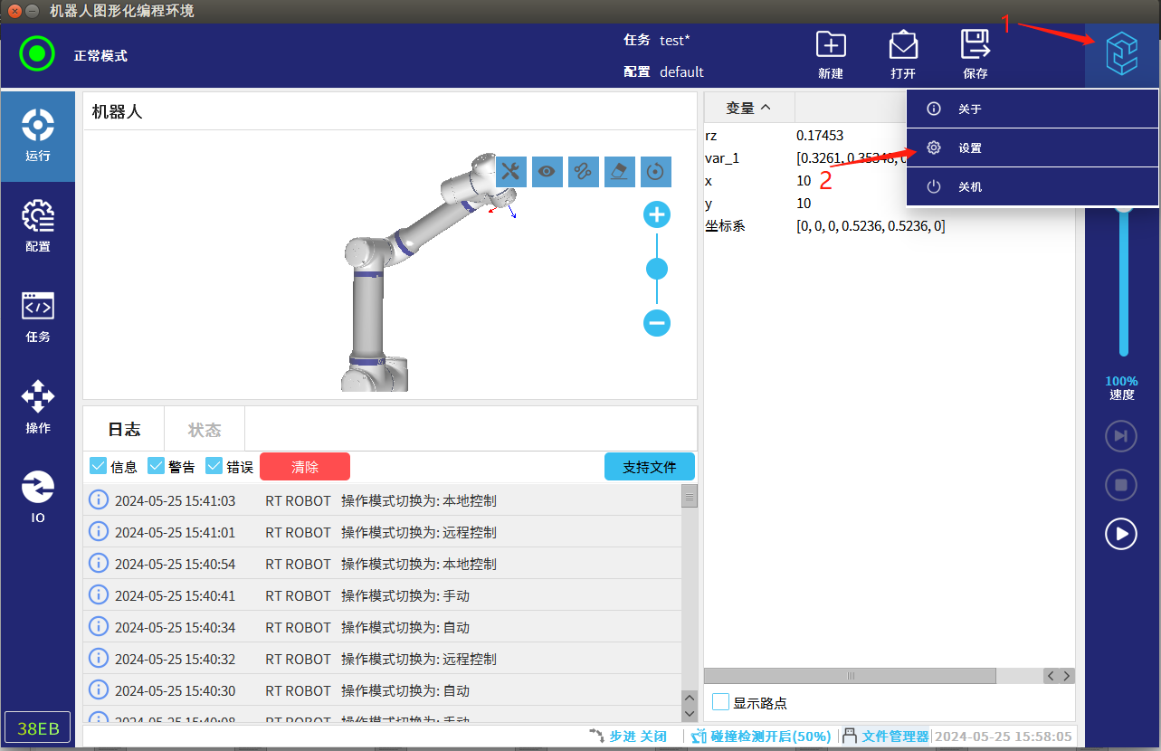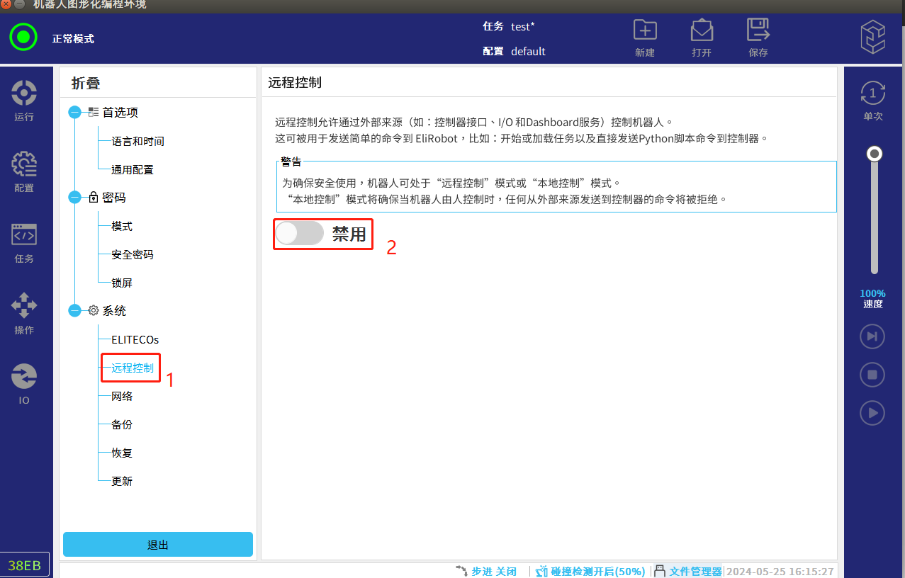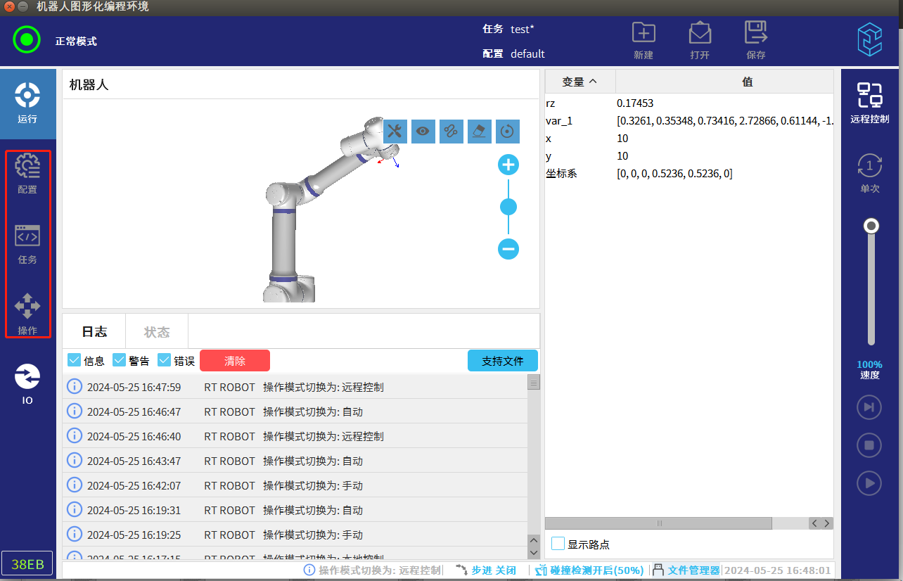 遠程模式即為可以通過遠程控制器來控制機器人的運動,例如通過Modbus,Ethernet,Profinet等通訊遠程控制實現機器人的運行