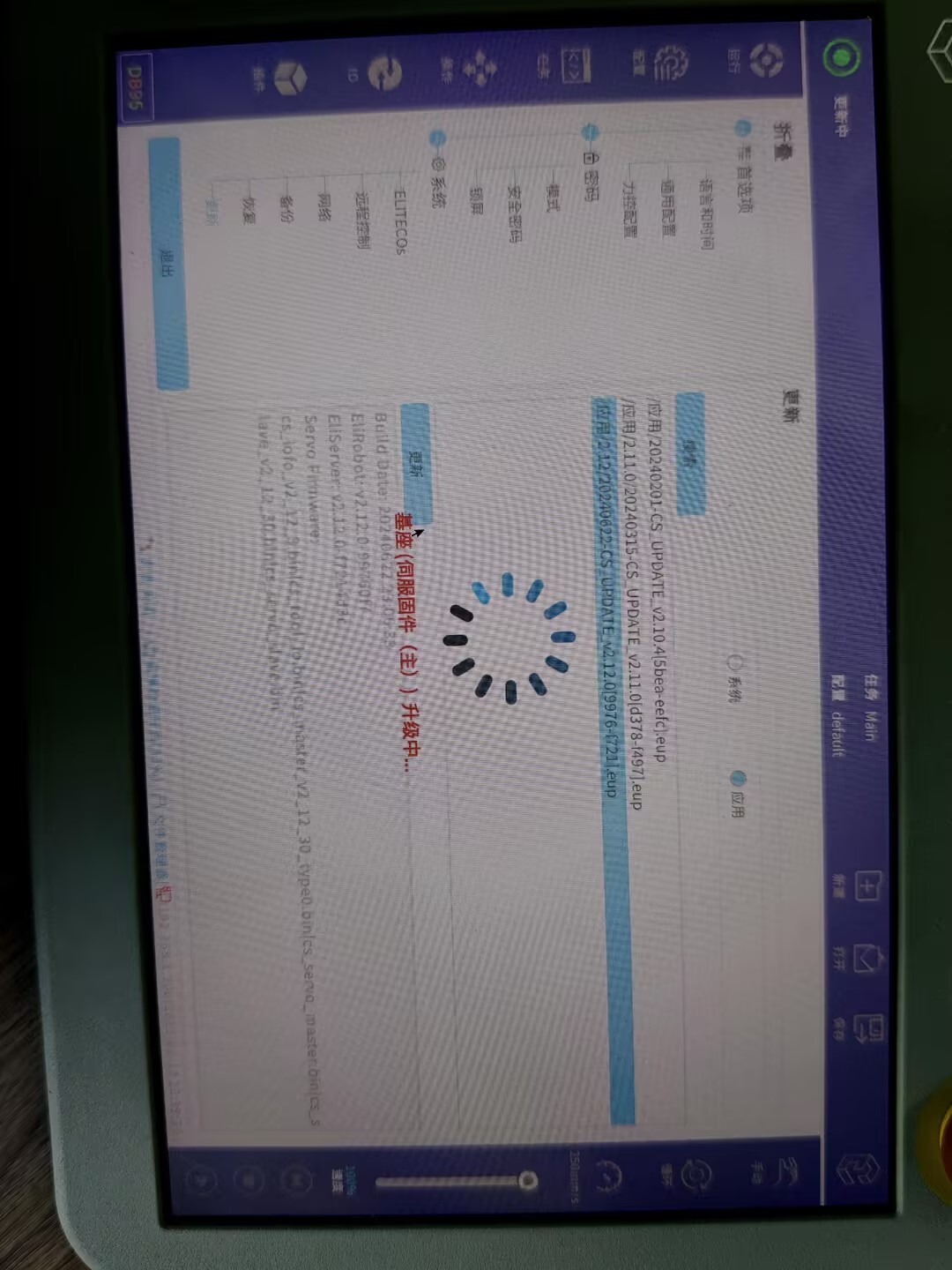 將下載完成的 EUP 格式文件放進(jìn) U 盤中,然后將 U 盤裝載至示教器上。在主界面進(jìn)入設(shè)置。