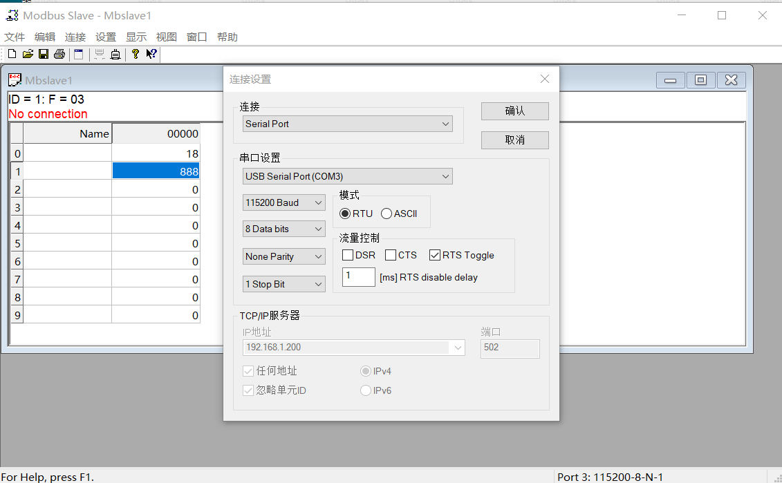 read_data=serial_modbus_write_registers(1,1,[18]) 從站寄存器地址1寫入18